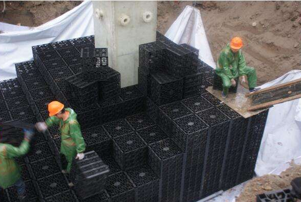 再有模塊式的組合,可使雨水集蓄池極大的適應場地的限制,組成各種形狀,同時具有安裝方便,承載力大,可拆除遷移至其他區域繼續使用等優點.