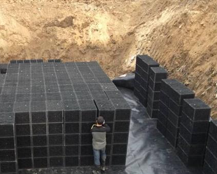 雨水收集裝置并不是單純的一個(gè)大儲(chǔ)水罐,而是采用無(wú)毒無(wú)害的聚丙乙烯材料做成的一個(gè)個(gè)幾十厘米見方的籠狀儲(chǔ)水器。