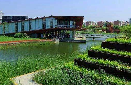 3、是生態小區雨水利用系統。小區沿著排水道建有滲透淺溝,表面植有草皮,供雨水徑流流過時下滲。超過滲透能力的雨水則進入雨水池或人工濕地,作為水景或繼續下滲。